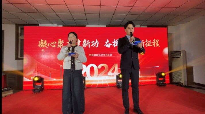 凝心聚力建新功 奮楫揚(yáng)帆啟新章。12月30日晚,公司在服務(wù)中心一樓舉行2024年元旦聯(lián)歡晚會(huì)。公司黨委書記、執(zhí)行董事裴慶軍出席聯(lián)歡會(huì)并致辭,代表公司領(lǐng)導(dǎo)班子向全體職工致以新年問候。公司黨委副書記、總經(jīng)理劉萬斌,黨委委員、紀(jì)委書記、工會(huì)主席王淑剛,黨委委員、副總經(jīng)理曹偉,黨委委員、副總經(jīng)理、安全總監(jiān)、食品安全總監(jiān)張傳水,副總經(jīng)理李秀勇,魯鹽泰安公司總經(jīng)理聶強(qiáng)出席活動(dòng)。