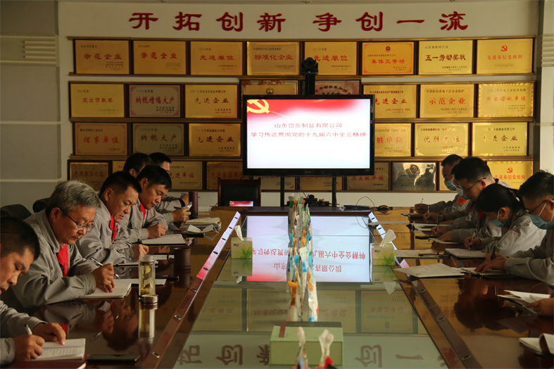 11月19日上午,岱岳制鹽黨委會(huì)召開擴(kuò)大會(huì)議,傳達(dá)學(xué)習(xí)貫徹黨的十九屆六中全會(huì)精神。公司黨委委員、副總經(jīng)理張英倉(cāng)主持會(huì)議并帶領(lǐng)學(xué)習(xí),黨委書記、執(zhí)行董事、總經(jīng)理裴慶軍發(fā)表講話。