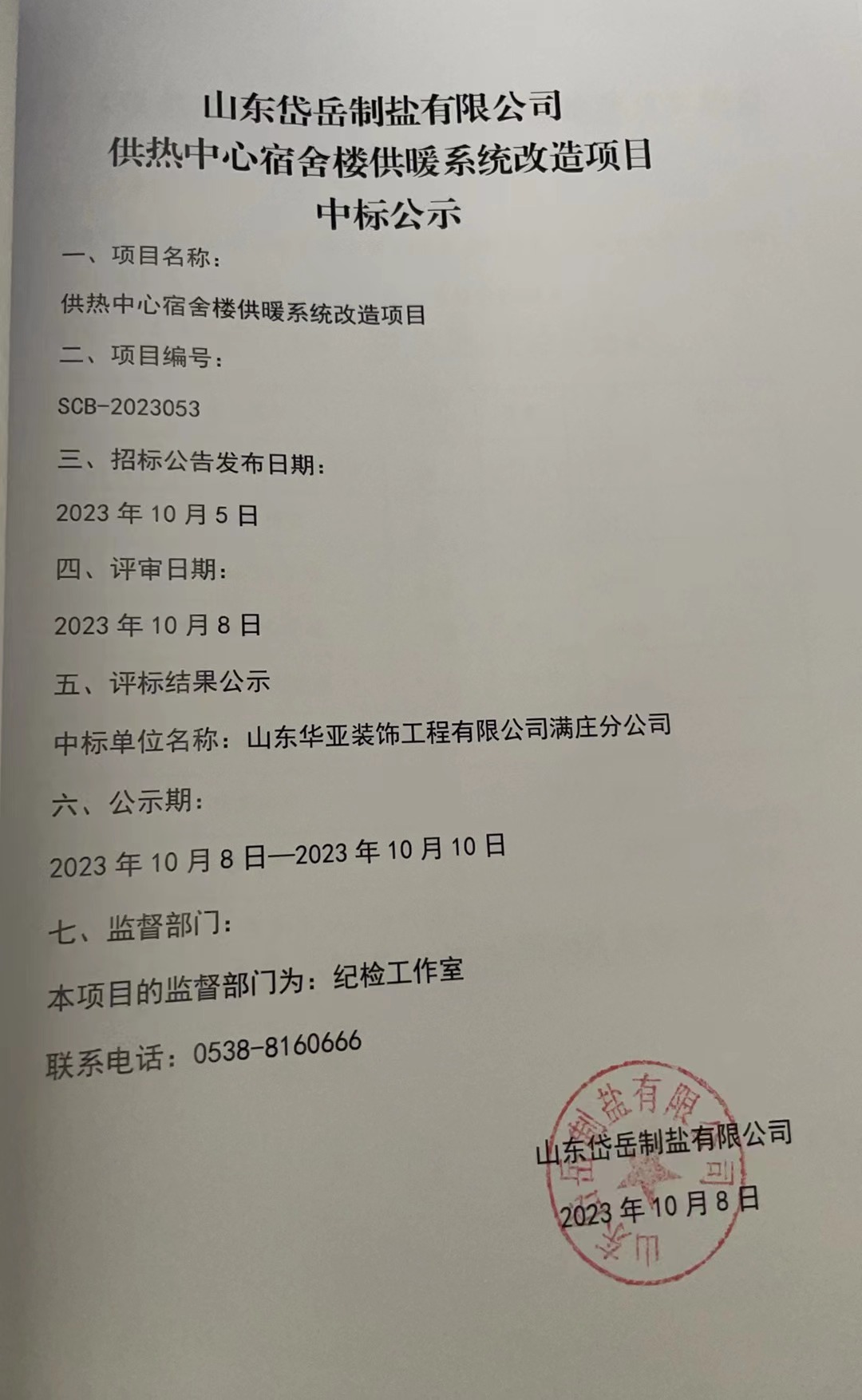 供熱中心宿舍樓供暖系統(tǒng)改造項(xiàng)目 中標(biāo)公示